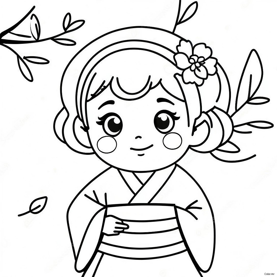 Télécharger le PDF Imprimable de Jolie Fille Japonaise Avec Des Cerisiers À Colorier Télécharger le PDF Imprimable de Jolie Fille Japonaise Avec Des Cerisiers À Colorier
